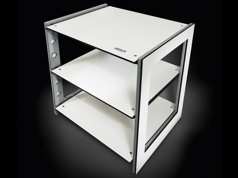 A fresh design language: self-supporting steel framework with CDF elements coupled/decoupled via a low-resonance tension system. Two shelf widths (680 mm / 1020 mm), subtle height adjustment, integrated feet for floor decoupling, and 90 kg per-shelf capacity, elegant, configurable, and sonically serious.