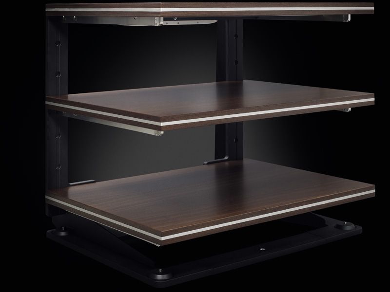 Sub-chassis architecture & three-point bearings isolate each shelf from the base and from other components for consistent equilibrium and minimal energy transfer.Numerically-optimized, one-piece steel frames deliver extreme rigidity and controlled resonance behavior, the foundation for a quieter system.Shelf systems tuned for stability and load, from PROTO’s adjustable three-point supports to KEO’s gyratory seesaw that auto-levels heavy gear, keep components mechanically calm.