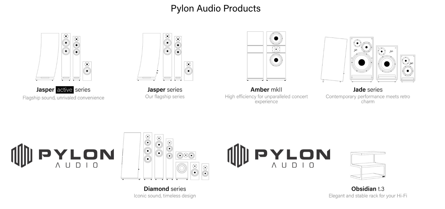 Pylon’s portfolio deliberately spans size, voicing, and style: vintage or modern aesthetics; compact to full-scale; horn-flavored impact (Amber mkII) or studio-grade balance (Jasper); and active wireless convenience (Jasper Active). Add broad finish options, and there’s a perfect match for any room, taste, or system, making floor planning and upsells easy for dealers.
